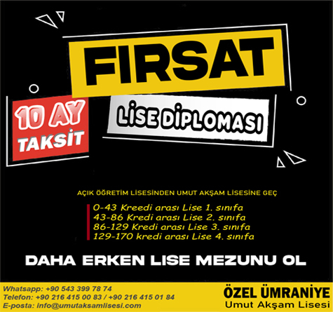 Ümraniye Özel Umut Akşam Lisesinden Lise Diploması almak artık çok kolay.